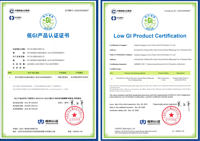 光友32年打造薯類方便主食健康品質(zhì):光友薯業(yè)32年來,專做健康薯業(yè),在中國乃至世界把紅薯、馬鈴薯做成一大健康主食產(chǎn)業(yè)。光友薯業(yè)歷經(jīng)32年來,光友綿陽米粉低GI健康方便主食發(fā)布,是繼光友酸辣粉低GI健康方便主食后,又一個健康爆款產(chǎn)品上市。光友低GI健康薯類方便主食是經(jīng)光友薯業(yè)技術(shù)創(chuàng)新,經(jīng)國家權(quán)威檢測機(jī)構(gòu)營養(yǎng)成分檢測和臨床試驗(yàn),取得低GI食品報告,由中國權(quán)威認(rèn)證機(jī)構(gòu)中檢科檢測后,為光友薯業(yè)頒發(fā)了光友綿陽米粉低GI健康方便主食認(rèn)證證書,這是線上線下各位領(lǐng)導(dǎo)、嘉賓、朋友,關(guān)心支持光友32年來共同取得的成果!