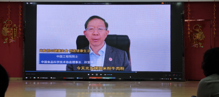 中國工程院院士、中國食品科學(xué)技術(shù)協(xié)會理事長孫寶國發(fā)來視頻祝賀《光友低GI健康主食 創(chuàng)造健康生活》:“2023年6月我和其他食品科學(xué)家一起應(yīng)邀到光友薯業(yè)參觀考察及成果評價,看見光友薯業(yè)32年專注薯類健康方便主食產(chǎn)業(yè),我們都很感動。光友薯類方便米粉是由鄒光友為課題負(fù)責(zé)人,研發(fā)完成國家十三五薯類方便主食中的一項(xiàng)重大成果,我多次組織技術(shù)成果評價,均評價為國際領(lǐng)先水平。今天,光友綿陽米粉牛肉米粉獲得低GI健康食品認(rèn)證,并召開新聞發(fā)布會向全球推廣,這是食品行業(yè)的一大喜訊,向光友薯業(yè)表示祝賀!”。