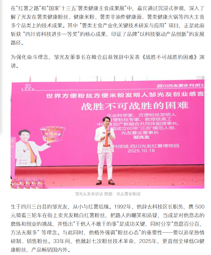 第三屆粉絲論壇 健康粉絲峰會(huì)在中國光友紅薯博物園召開