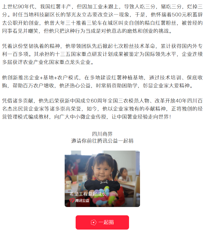 轉(zhuǎn)載四川商界網(wǎng) 四川商界人物|四川光友薯業(yè)集團(tuán)董事長鄒光友